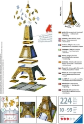 Geniet van het in elkaar zetten van een driedimensionale puzzel met het model van de Eiffeltoren. Speciaal gebogen en flexibele onderdelen maken een nauwkeurige verbinding mogelijk zonder lijm, wat uitstekende stabiliteit van dit iconische bouwwerk garandeert. Het model is gemaakt van stevig plastic, wat zijn lange levensduur waarborgt.