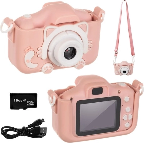 De Kruzzel kinderfotocamera stimuleert creativiteit en spelplezier – maakt foto’s en video’s in Full HD met geluid, biedt filters en kaders, burst-modus en eenvoudige bediening voor kinderen vanaf 3 jaar. Inclusief een 16GB kaart en een beschermende siliconen hoes in de vorm van een kat voor veilig gebruik.