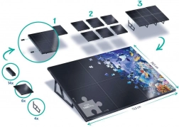 Dit gekantelde puzzelbord biedt een comfortabele en efficiënte ondergrond voor het leggen, die voorkomt dat de stukjes wegglijden of van hun plaats bewegen. Met afmetingen van 72 x 51 cm biedt het genoeg ruimte voor zelfs de meest gecompliceerde puzzelprojecten.