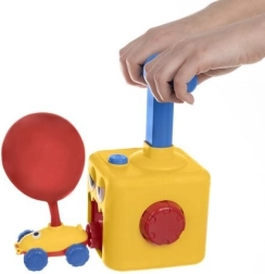 Ontdek de magie van luchtaandrijving zonder batterijen. Plaats eenvoudig een onopgeblazen ballon op het autootje, sluit hem aan op de pomp, pomp een paar keer en laat hem met één druk op de knop los – het autootje zoeft over de vloer en kinderen zien met eigen ogen de kracht van druk en reactie.