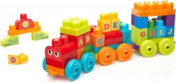 Deze kleurrijke educatieve set laat je drie onderstellen met wieltjes koppelen tot een treintje en er letterblokjes op stapelen. Zo leren kinderen spelenderwijs het alfabet, maken ze eerste woordjes en oefenen ze de oog-handcoördinatie.