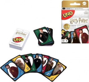 Betreed de wereld van toverkunst met UNO Harry Potter, waar je op de kaarten HARRY, HERMELIEN, RON, professor PERKAMENTUS en andere personages van ZWEINSTEEN tegenkomt. Spelers leggen om beurten kaarten af die overeenkomen met de kleur of het nummer van de bovenste kaart van de aflegstapel, en wie als eerste al zijn kaarten kwijt is, scoort punten. Vergeet niet UNO! te roepen wanneer je nog één kaart in je hand hebt.