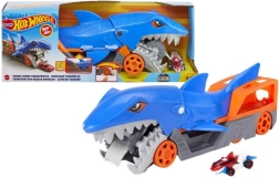 De Hot Wheels City Haaientransporter brengt actie en orde samen. Het iconische ontwerp geïnspireerd op het Shark Bite-model biedt bijtende kaken die bij het vooruitduwen “dichtklappen” en het autootje binnenin opbergen. Kinderen zijn dol op het dramatische inslik-effect, ouders op het praktische opbergen en meenemen.