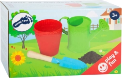Deze kleurrijke kindertuinset is perfect voor de eerste kweekexperimenten. Vul de potjes met aarde, zaai de zaadjes en kijk hoe de plantjes groeien. De metalen schep met een stevig houten handvat ligt goed in kleine handen en de kleine gieter met broes zorgt voor zachte bewatering zonder te veel water.