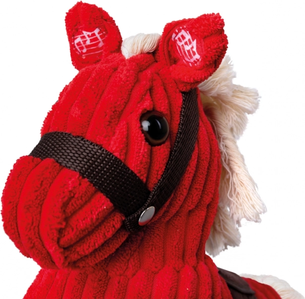 Geef je kind eindeloze uren speelplezier met dit rode pluchen paardje van het merk Bino. Perfect voor kinderen vanaf 3 jaar. Het paardje is uitgerust met afneembare accessoires, waaronder een halster en een zadel, zodat je kind echte avonturen kan naspelen. Druk gewoon op de knop en het paardje maakt geluid, alsof het tot leven komt! Batterij niet inbegrepen.