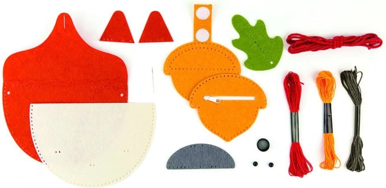 Deze speelse DIY-set ontwikkelt fijne motoriek, creativiteit en geduld. De voorgeperforeerde viltdelen zorgen voor eenvoudig en netjes naaien, zodat kinderen het project zelfstandig of met minimale hulp aankunnen. Het resultaat is een charmante kinderschoudertas in vosvorm en een kleine eikel-portemonnee voor spulletjes.