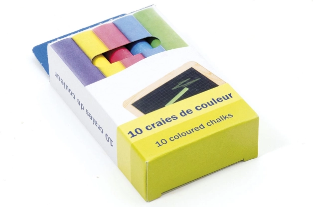 Praktische set schoolkrijt in kartonnen verpakking, ideaal als aanvulling voor kinder- en kantoorborden. Bevat 10 stuks kleurkrijt voor comfortabel schrijven en tekenen op het bord.