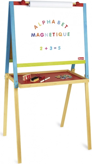 Stimuleer de creativiteit van kinderen met dit stabiele houten 2-in-1-bord. Het biedt een zwart krijtbord en een wit magnetisch bord voor stiften, een papierrolhouder, een grote opbergruimte en rijkelijke accessoires. Gemaakt in Frankrijk van massief hout, met een watergedragen afwerking – een veilige en duurzame oplossing voor dagelijks knutselen.