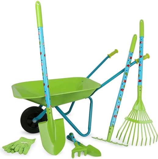 Ontdek de complete tuinset voor kinderen met een robuuste kruiwagen, lange en korte gereedschappen en handschoenen – ideaal voor de eerste klusjes in de tuin. De set biedt een duurzame metalen constructie, lichte hanteerbaarheid en kinderformaat gereedschap voor veilig en leuk meehelpen met de ouders.