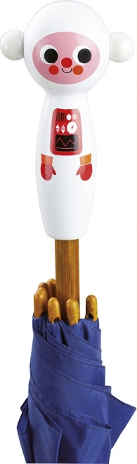 Ontdek de charme van regenachtige dagen met de VILAC Kinderparaplu Astronaut. De kleurrijke ruimtelijke print met planeten en raketten maakt de weg naar crèche of school leuk, terwijl de robuuste constructie betrouwbaar beschermt tegen de regen. De ergonomische houten handgreep ligt goed in kind handen en zorgt voor een zekere greep.
