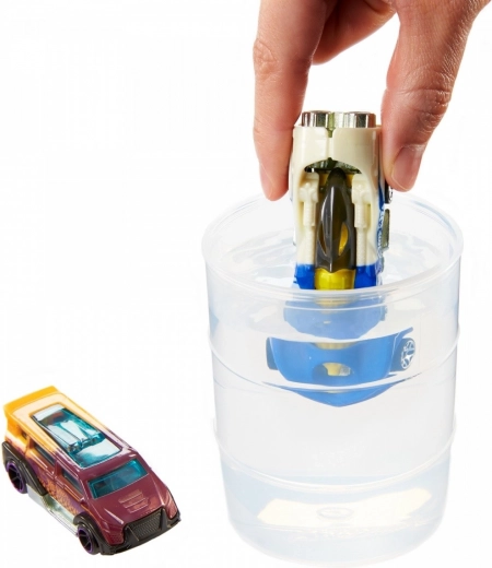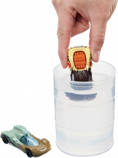 Deze geweldige set Hot Wheels Color Reveal bevat twee autootjes op schaal 1:64, die bedekt zijn met een speciale verflayer en geheim blijven tot de eerste onderdompeling.