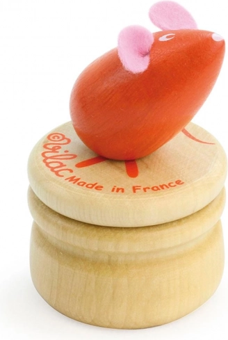 Schattige houten tandenbox met muis, gemaakt in Frankrijk, ideaal voor kinderen vanaf 5 jaar.