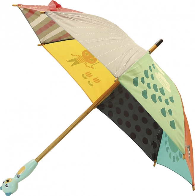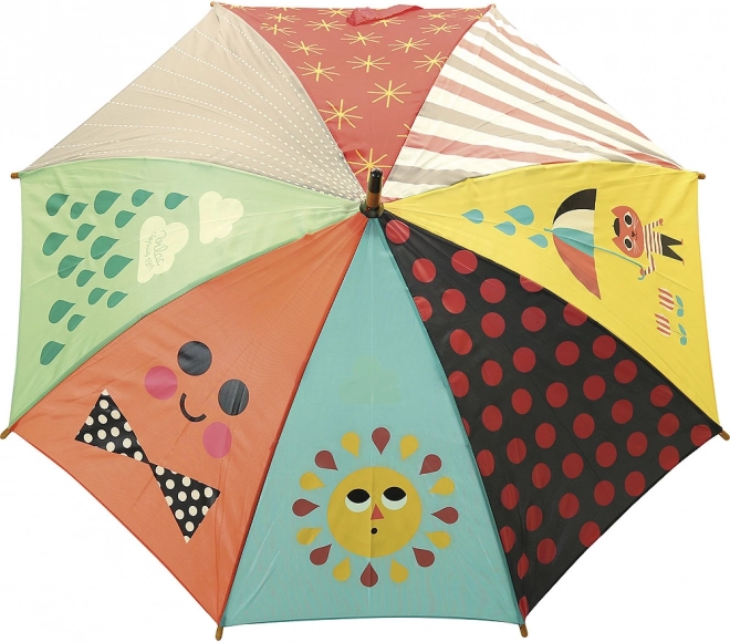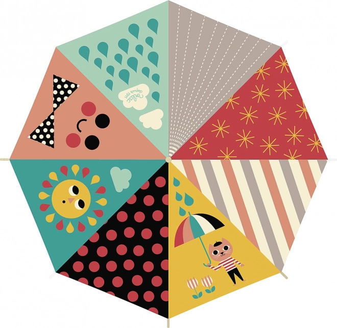 De paraplu is in Frankrijk gemaakt van hoogwaardige materialen met aandacht voor veiligheid en comfort voor kleine gebruikers. De ergonomische houten handgreep ligt ook in kleine kinderhanden goed en het soepele openen maakt zelfstandig gebruik eenvoudig.