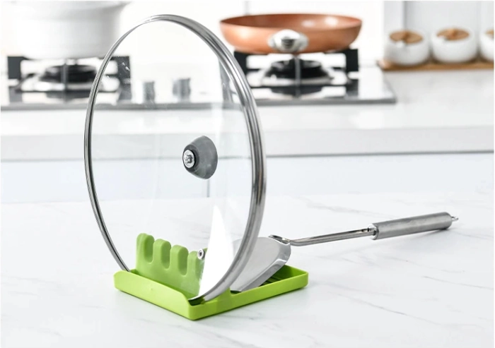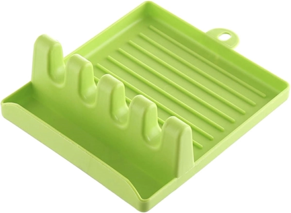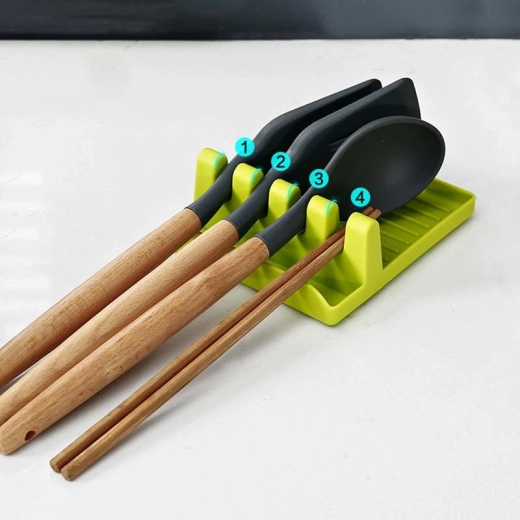 De aflegstandaard heeft 4 sleuven waarin je tijdens het koken elk keukengereedschap kunt neerleggen. De siliconen houder fungeert ook als organizer voor in de lade, waar hij je lepels en opscheplepels perfect ordent. Geen chaos meer in de lades en geen keukengerei meer op één hoop. De houder is antislip, dus hij blijft uitstekend staan op je aanrecht.