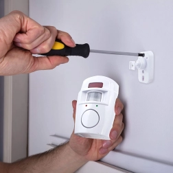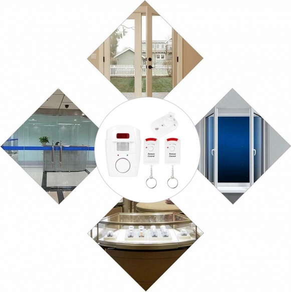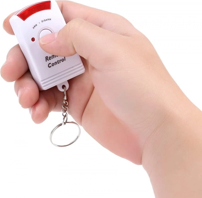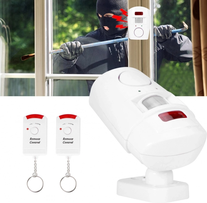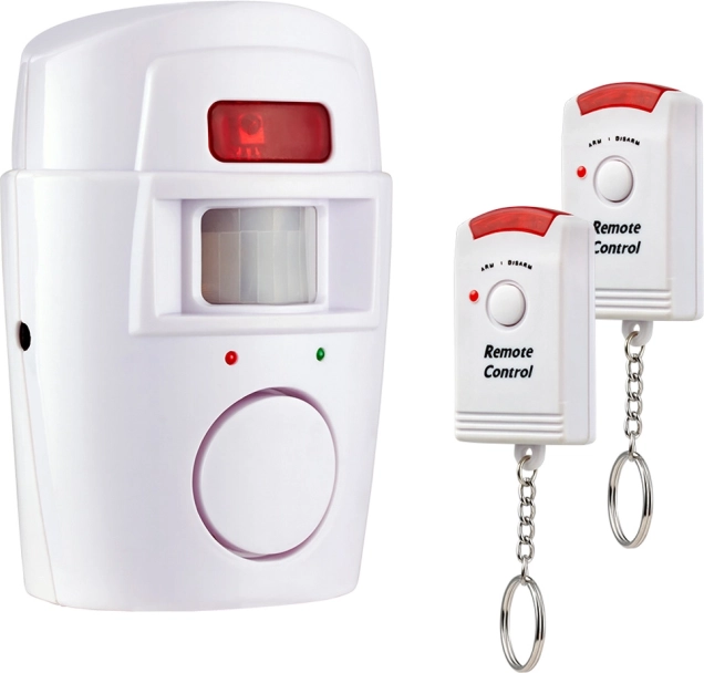 De draadloze PIR-alarmset is een ideale keuze voor snelle en betaalbare beveiliging van ruimtes. Na activering krijgt de gebruiker een korte vertraging om de zone te verlaten en bij detectie van beweging klinkt er een intens akoestisch signaal van 105 dB. De twee meegeleverde afstandsbedieningen maken gemakkelijke activering en deactivering van het systeem mogelijk.