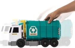 Ontdek de robuuste Matchbox recycletruck van 38 cm die kinderen meeneemt in de wereld van afvalscheiding en verantwoord gedrag. Echte licht- en geluidseffecten verhogen de authenticiteit van het spel – bij vooruit duwt u de motor hoort u, bij achteruit wordt piepen zoals bij een echte vuilniswagen geactiveerd.