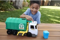 De werkende hefarm leegt de meegeleverde bak rechtstreeks in de laadruimte en de achterkant van de truck maakt eenvoudig “kiepen van de lading” in een denkbeeldige sorteerstraat mogelijk. Kwalitatieve afwerking, recyclingthema’s en duurzame materiaalherkomst (80% plastic met ISCC-certificering) maken deze truck een geweldig cadeau voor kinderen die van stadsvoertuigen houden.