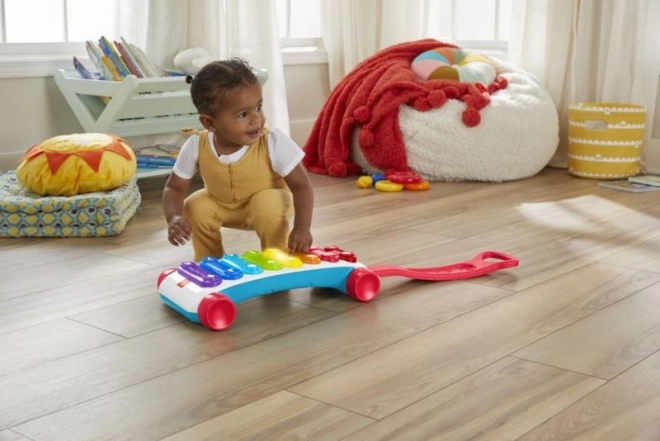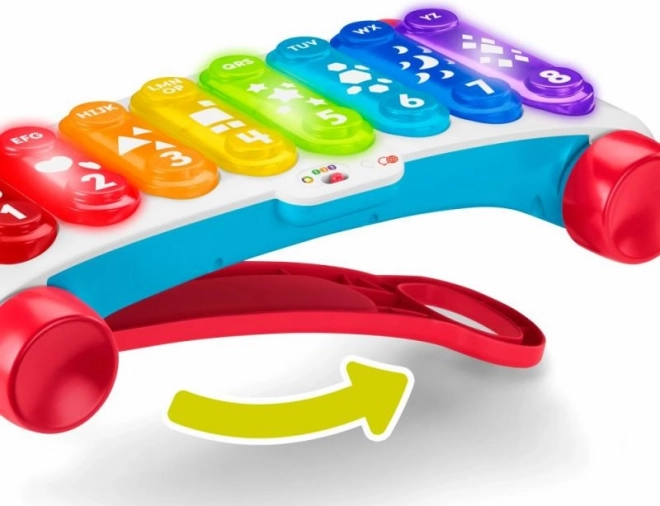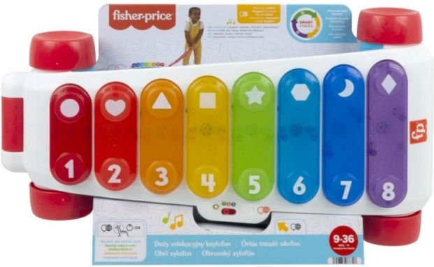 De grote educatieve xylofoon van Fisher-Price is een nieuwe versie van het klassieke trek-speelgoed, nu met nog meer plezier! Deze extra grote interactieve xylofoon heeft 8 verlichte toetsen die meer dan 60 geluidsactiveringen starten, waaronder verschillende geluiden, liedjes en zinnen. Het speelgoed is voorzien van een stevige, inklapbare hendel, zodat kleine muzikanten zowel zittend kunnen spelen als met de xylofoon kunnen rondlopen. Dankzij de Leerniveaus-technologie kan de speelwijze worden aangepast naarmate het kind groeit. Educatieve zinnetjes en liedjes leren onder meer het alfabet, cijfers en vormen, maar ook eenvoudige woorden in het Engels. Druk op de wereldbolknop om de taal te kiezen: Tsjechisch, Pools, Hongaars, Slowaaks of Engels.