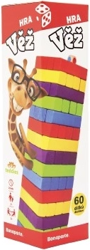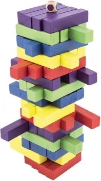 Klassieke houten toren is ideaal voor alle leeftijden. Met 60 kleurrijke stukken kun je binnen of buiten uren plezier hebben.