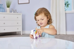 Het speelgoed heeft felle kleuren en een speelse visuele stijl die kinderen aanspreekt en hun verbeelding prikkelt.