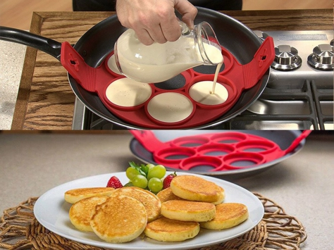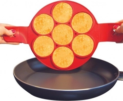 Deze multifunctionele vorm van voedingsgeschikte siliconen maakt het bereiden van ontbijt en snelle diners eenvoudiger. Leg hem gewoon in de pan, vul de openingen met beslag en draai na het garen om met behulp van de zijknoppen – zo krijg je gelijkmatig gebakken en perfecte vormen zonder uitlopend beslag.