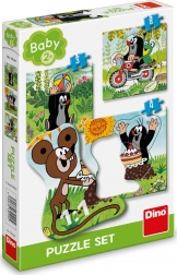 De set van drie puzzels is ontworpen om de creativiteit en motorische vaardigheden van kinderen te bevorderen. Dankzij de grote en stevige stukken wordt puzzelen een leuke bezigheid, zelfs voor de allerkleinsten. Elk plaatje is verdeeld in 3, 4 en 5 delen, die nauwkeurig de contouren van dieren en andere objecten volgen.