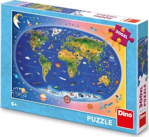 Deze puzzel met illustraties van de wereldkaart is ideaal voor alle kleine reizigers. Laat kinderen de mogelijkheden van vervoer en de dierlijke bewoners van alle continenten zien. Het leggen van 300 XL stukken is niet alleen leuk, maar ook educatief.