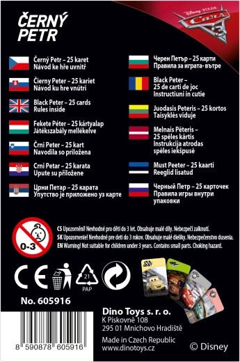 Geniet van het geweldige kaartspel Zwarte Piet met motieven uit de film Cars 3, dat is bedoeld voor alle kleine racers vanaf 4 jaar. Dit spel is niet alleen leuk, maar helpt ook bij het ontwikkelen van geheugen en communicatievaardigheden voor kinderen.
