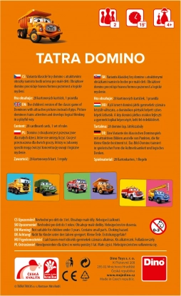 Het populaire kinderspel domino met motieven van Tsjechische voertuigen TATRA brengt plezier en leren in één. Bevat 28 stevige kaartjes van veilige kartonkwaliteit, is licht en ideaal voor onderweg. Bij het leggen ontwikkelen kinderen aandacht en logisch denken. Gemaakt in Tsjechië, houder van het certificaat Veilig en kwalitatief speelgoed.