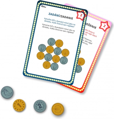 - 50 speelkaarten met raadsels, opdrachten en trucs; 20 munten