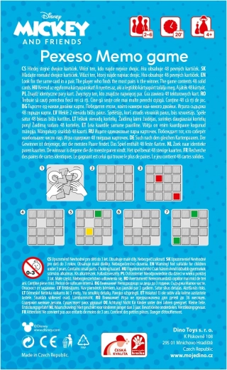 Tsjechisch product van Dino Toys met duurzame kartonnen kaartjes en zorgvuldige bedrukking van gelicentieerde DISNEY-motieven.