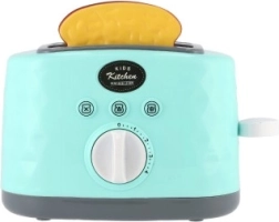 Broodrooster in turquoise met realistische knopfuncties en mechaniek om de interesse van kinderen te prikkelen.
