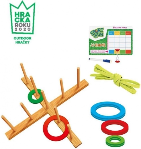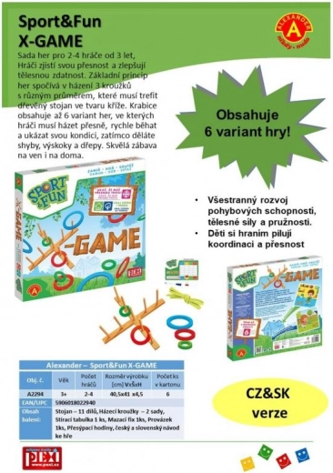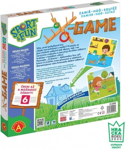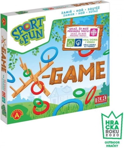 SPORT & FUN van ALEXANDER werd in Tsjechië bekroond als Speelgoed van het Jaar 2020 in de categorie OUTDOOR. X-GAME is een dynamische set waarbij je 3 ringen met verschillende diameters gooit op een houten standaard in de vorm van een kruis. Je scoort punten op basis van de ringgrootte en de plaats van de treffer. Het spel ondersteunt coördinatie, evenwicht en bevordert gezonde gewoonten door beweging.
