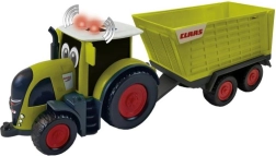 De Claas tractor met aanhanger biedt een authentieke boerderijervaring voor kleine kinderen. Het speelgoed is gemaakt van groene kunststof met zwarte en rode accenten en is ongeveer 28 cm lang. Dankzij de lieve ogen die de tractor versieren, brengt hij plezier en een glimlach op de gezichten van kinderen. Het is geschikt voor kinderen vanaf 12 maanden en ontworpen met oog voor kinderveiligheid, met afgeronde hoeken en randen.