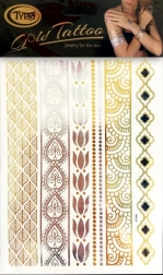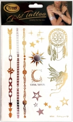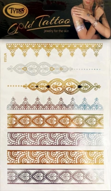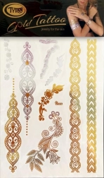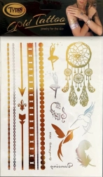 Gouden plakband tattoos TyToo zijn echte sieraden voor je huid. Eenvoudig en snel aan te brengen, geschikt voor verschillende delen van het lichaam.