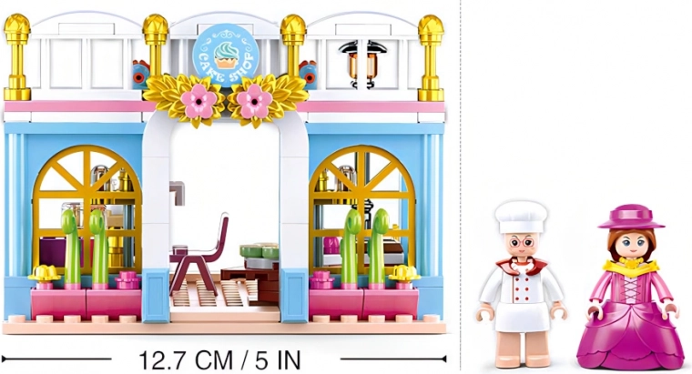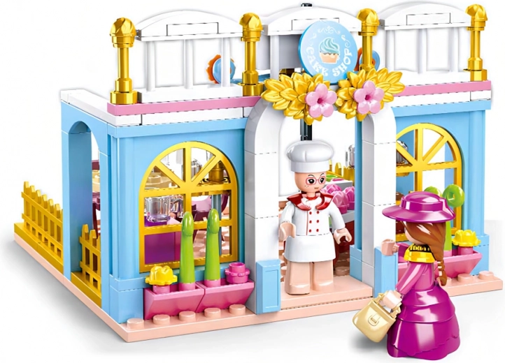 Schattige bouwset van een historische bakkerij uit de serie Sluban Girl's Dream Village met 199 onderdelen, 2 minifiguren met beweegbare delen en volop accessoires om verhalen uit de patisserie te creëren. De blokken zijn van hoogwaardig ABS-kunststof, hebben een gemiddelde moeilijkheidsgraad en zijn compatibel met LEGO, Cobi en Mega Bloks – ideaal voor het stimuleren van creativiteit bij kinderen vanaf 6 jaar.