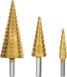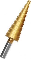 Stapsgewijze boren zijn ideaal voor het snel creëren van verschillende diameters met één gereedschap. Dankzij de meerdere stappen op elke boor vergroot u eenvoudig het gat tot de gewenste maat zonder gereedschap te wisselen. De titaniumcoating vermindert wrijving, verlengt de levensduur en verbetert de snijkwaliteit.