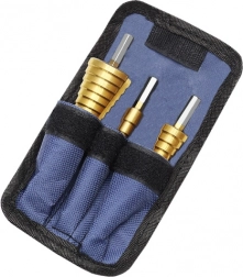 Elke boor heeft een duidelijk leesbare diametermarkering, zodat u altijd weet in welke fase van het boren u zich bevindt. De set wordt geleverd in een duurzaam textielen etui dat de boren gescheiden, beschermd en klaar voor gebruik houdt, thuis, in de werkplaats en op locatie.
