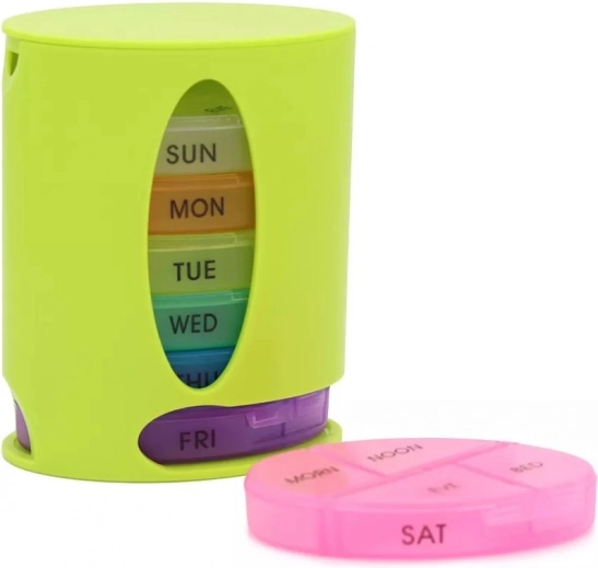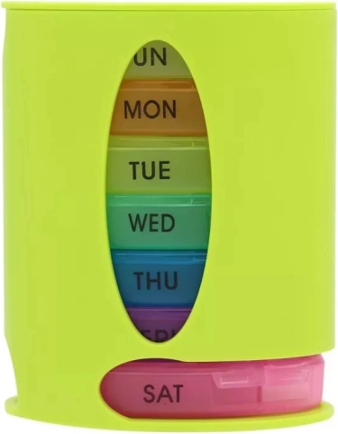 Deze wekelijkse medicijnorganizer helpt regelmaat en orde te houden bij het innemen van medicijnen of voedingssupplementen. Elke daglade is kleurgecodeerd en voorzien van de dagnaam, wat zorgt voor snelle oriëntatie en het risico op het overslaan van een dosis minimaliseert.
