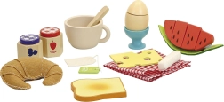 Trakteer kinderen op een speels ontbijt met de prachtig afgewerkte VILAC-set. In de doos vind je een doormidden te snijden ei, toast, kaas, croissant, 2 jammetjes, een kop thee met theezakje en plakjes watermeloen. Alles is gemaakt van hoogwaardig hout en vilt voor duurzaamheid en een authentieke look.