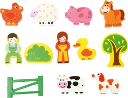 Ontdek de charme van de boerderij in een praktische verpakking. Het reiskoffertje verandert uitgeklapt in een overzichtelijk speelbord waarop kinderen verhalen tot leven brengen met 12 houten figuurtjes van boerderijdieren. Dankzij massief hout zijn de figuurtjes duurzaam, liggen ze prettig in de hand en nodigen ze uit tot ontdekken met hun vrolijke kleuren.