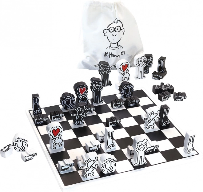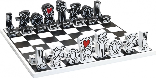 Deze schaakset van Vilac tilt het klassieke strategiespel naar een designobject. Iconische silhouetten en harten uit het werk van KEITH HARING maken van elke partij een esthetische beleving. Dankzij de robuuste houten uitvoering biedt de set een lange levensduur en een prettig spelgevoel.