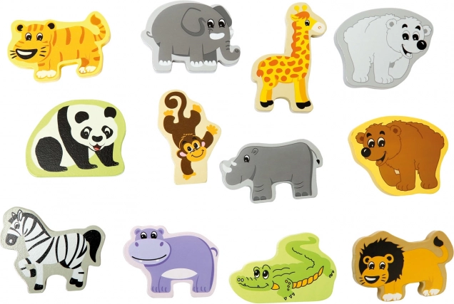 - 12 houten figuren van exotische dieren + koffertje (totaal 13 delen)