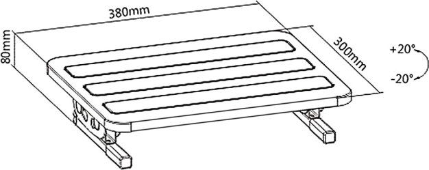 Drie antislipstroken en een oppervlak van 380 × 300 mm houden je voeten veilig en comfortabel op hun plaats.