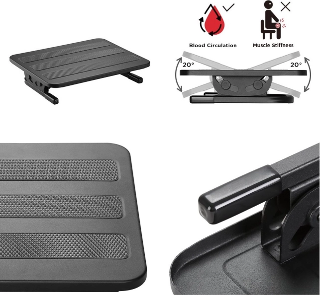 De royale afmetingen van 380 × 300 mm bieden voldoende ruimte, ook voor grotere voeten. De voetensteun helpt een goede doorbloeding van de benen te behouden, vermindert vermoeidheid en verhoogt het comfort bij langdurig zitten, thuis of op kantoor.