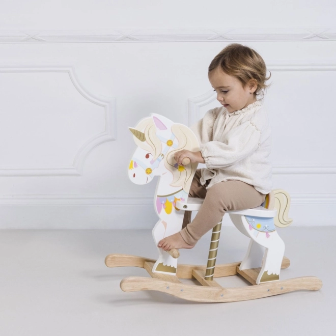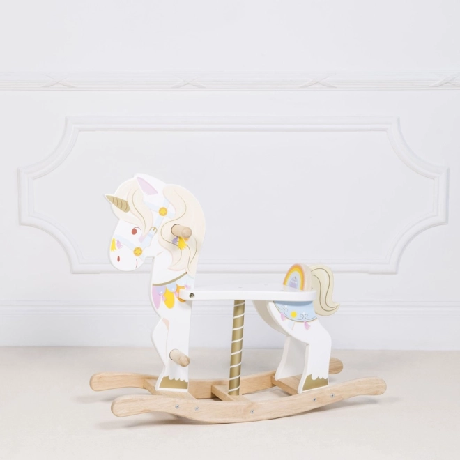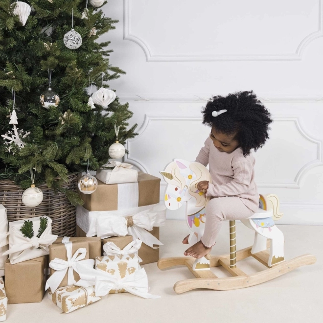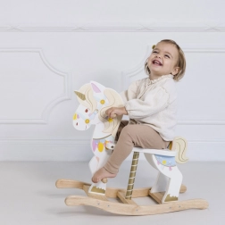 De schommelende eenhoorn van LE TOY VAN uit de Petilou-collectie is een klassiek speelgoed in een modern jasje. Dankzij de stevige houten basis en doordachte ergonomie ondersteunt hij natuurlijk schommelen en ontwikkelt hij coördinatie, balans en zelfvertrouwen in beweging. Rijke kleurrijke details, een gouden hoorn en een lieve uitstraling prikkelen de fantasie en het speelplezier.