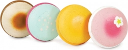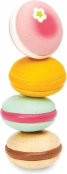 Vier houten macarons in zachte tinten brengen elk spelletje café of patisserie tot leven en stimuleren de verbeelding van kinderen.