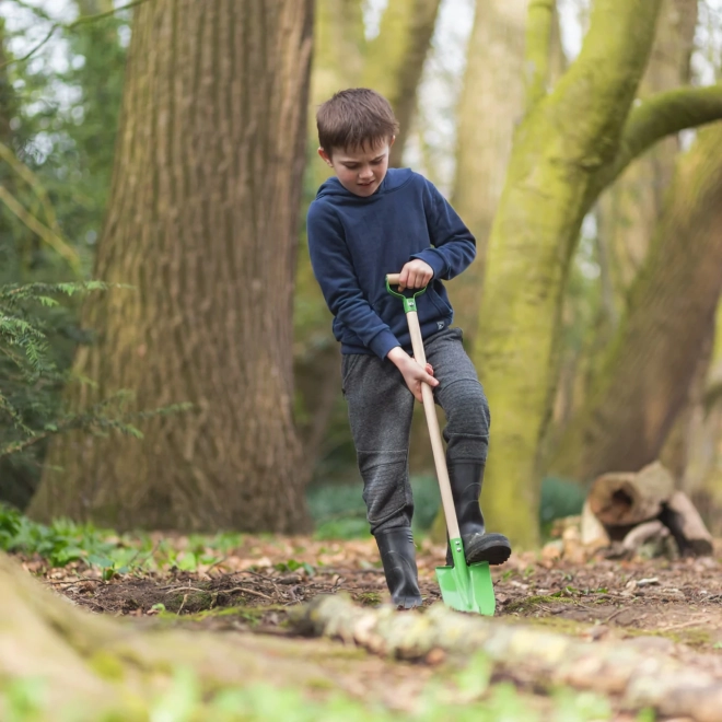 Stimuleert actief bewegen en buiten zijn – kinderen kunnen ouders en grootouders helpen, leren over de natuur en hun vaardigheden ontwikkelen. De schop is stevig genoeg voor enthousiast kinderwerk en tegelijk veilig. Dankzij de opvallende groene kleur is hij bovendien makkelijk terug te vinden in het gras of in de tuin.