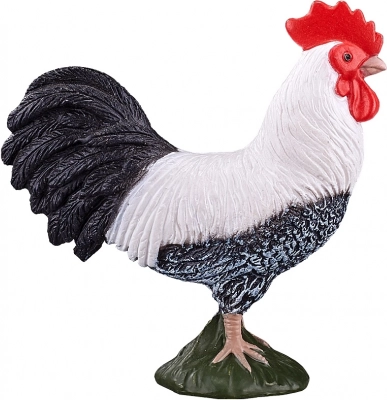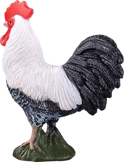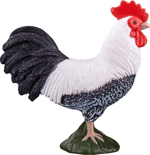 Natuurgetrouw gevormde veren, contrasterende zwart-witte kleuring en een rode kam voor een authentieke haanuitstraling.