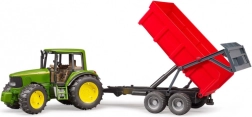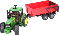 De set met JOHN DEERE-tractor en functionele kiepwagen biedt kinderen een realistische ervaring van boerderijwerk. De tractor is gedetailleerd uitgevoerd, heeft een openende motorkap, een bestuurbare vooras via het verlengde stuur in de cabine en opvallende geprofileerde banden voor een natuurgetrouwe look en sporen.